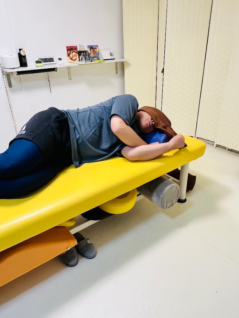 うつ伏せは反り腰ストレッチのみで最後に坐骨神経伸展で施術を