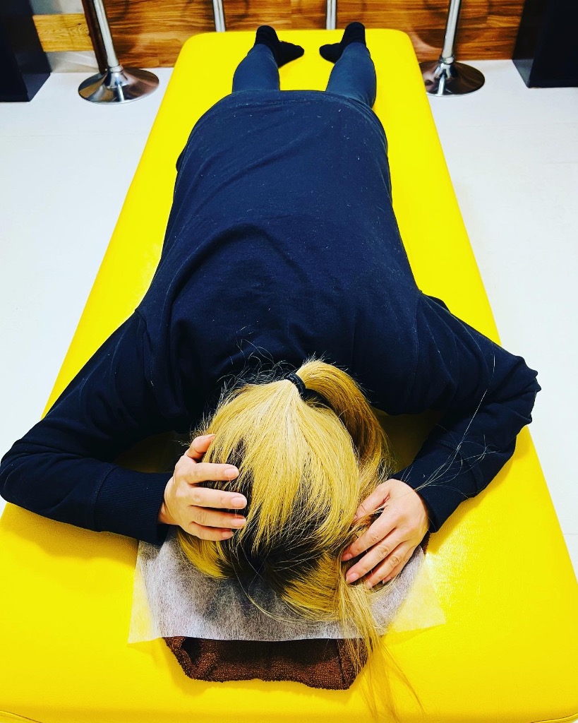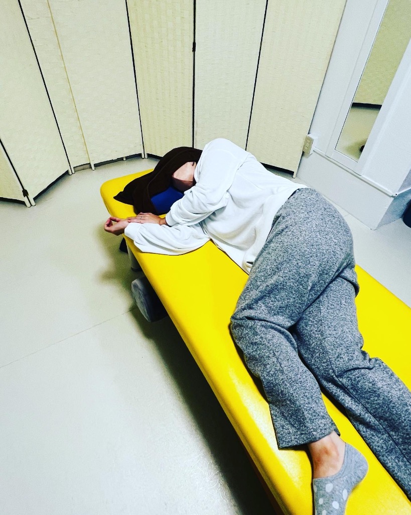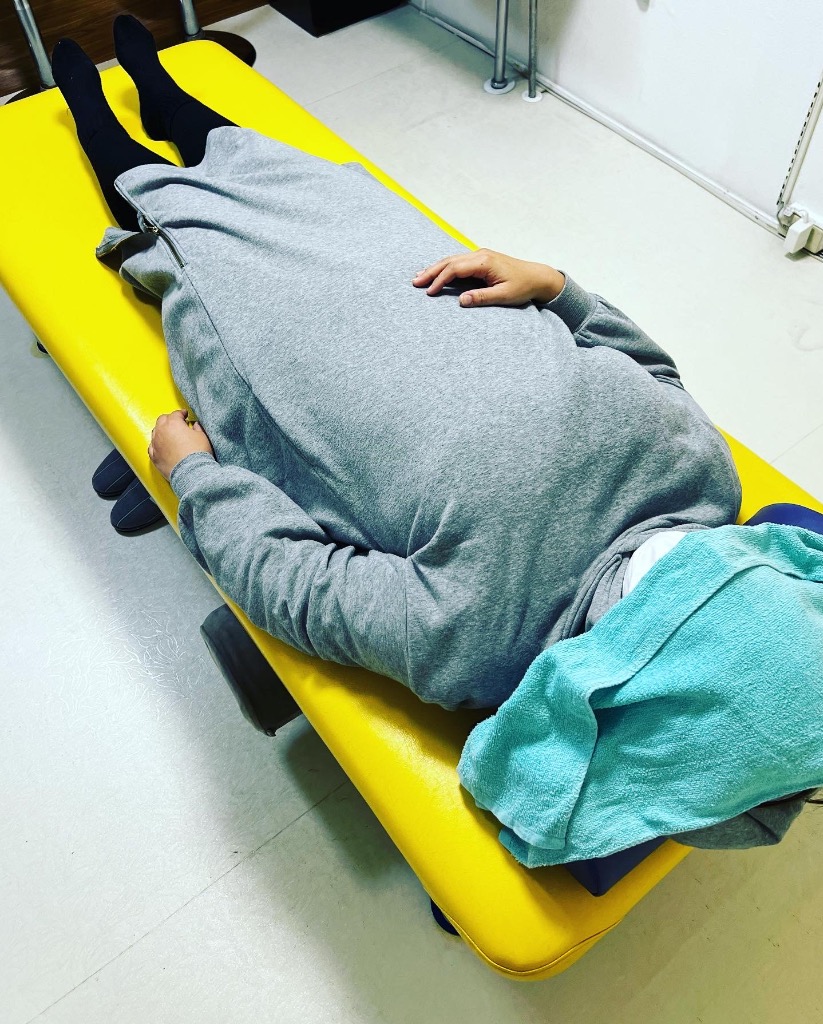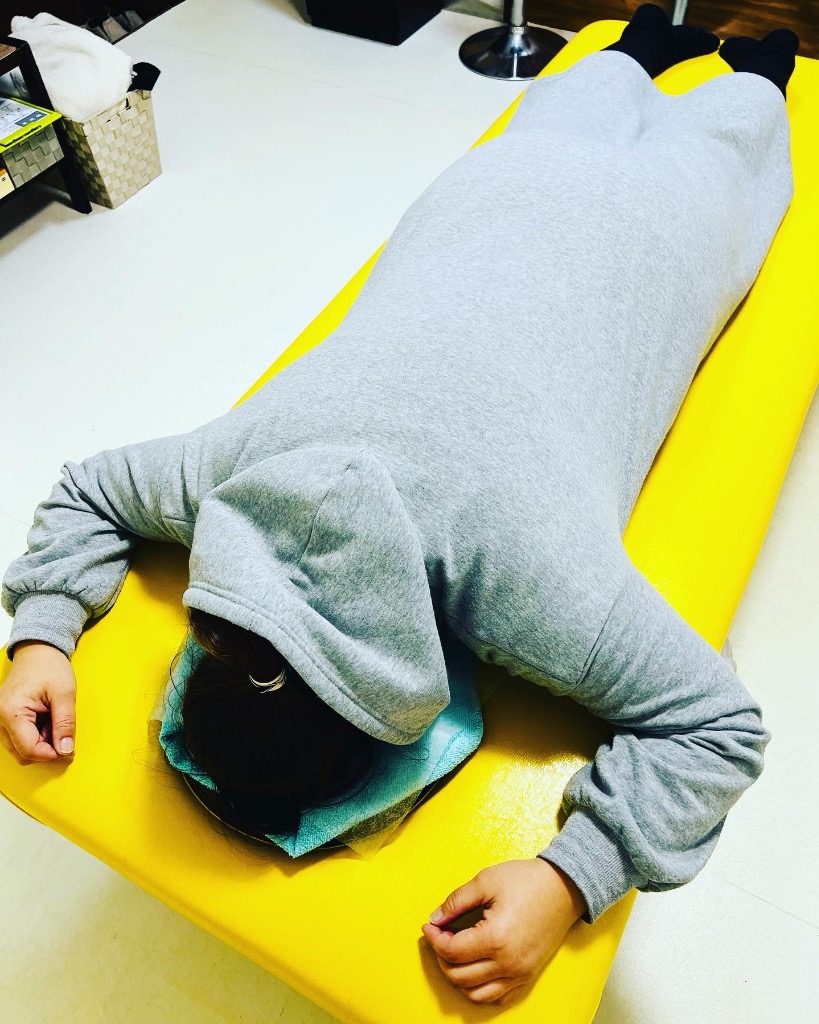 前半うつ伏せスタート➡️秘技横向き整体でのお気に入り抱き枕メーテルの出番でリラックス脱力時代😇仕上げに下肢のアライメント調整でfinish🙇🏻♂️