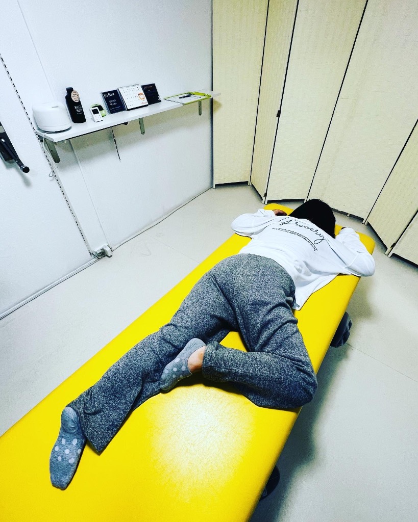 お世話になってます横浜市の柔道家🥋さん。柔道🥋稽古サイクリング🚵♀️でのお疲れ全開Max💧反り腰痛 下肢のアライメントが不合格🙅♀️今年初のご来店ありがとうございます🙇🏻♂️