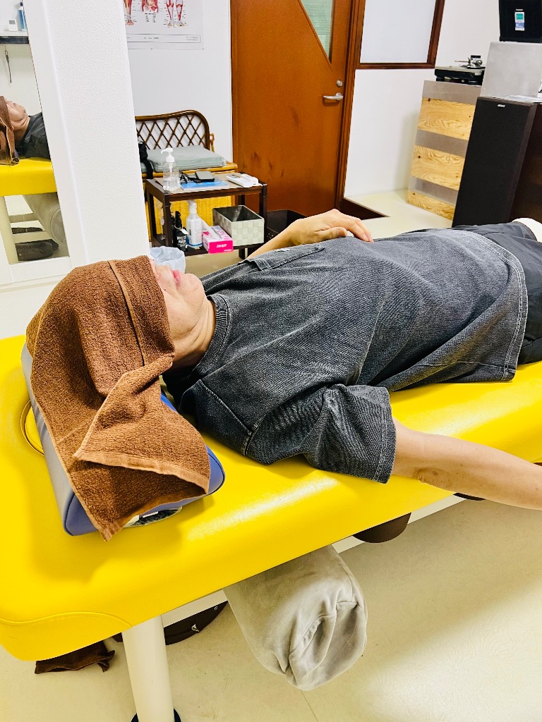 ㊙️伝の浸透療術+肩甲骨はがし改+反り腰ストレッチ+オリジナルドライヘッドスパにて、首肩腰の緊張+痛み軽減へ👍慢性化してますのでまた来月ご予約お待ちしてます♩ご無理なさらずお大事に🙇🏻♂️