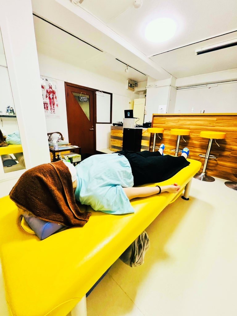大会前の稽古後からご予約ありがとうございます♩情熱❤️🔥柔道家🥋さん♩暑い稽古での疲労💧猛稽古でバキバキ緊張反り腰痛+首こり肩こりが酷く超おすすめ整体🙌当店㊙️奥義!!合格整体にて