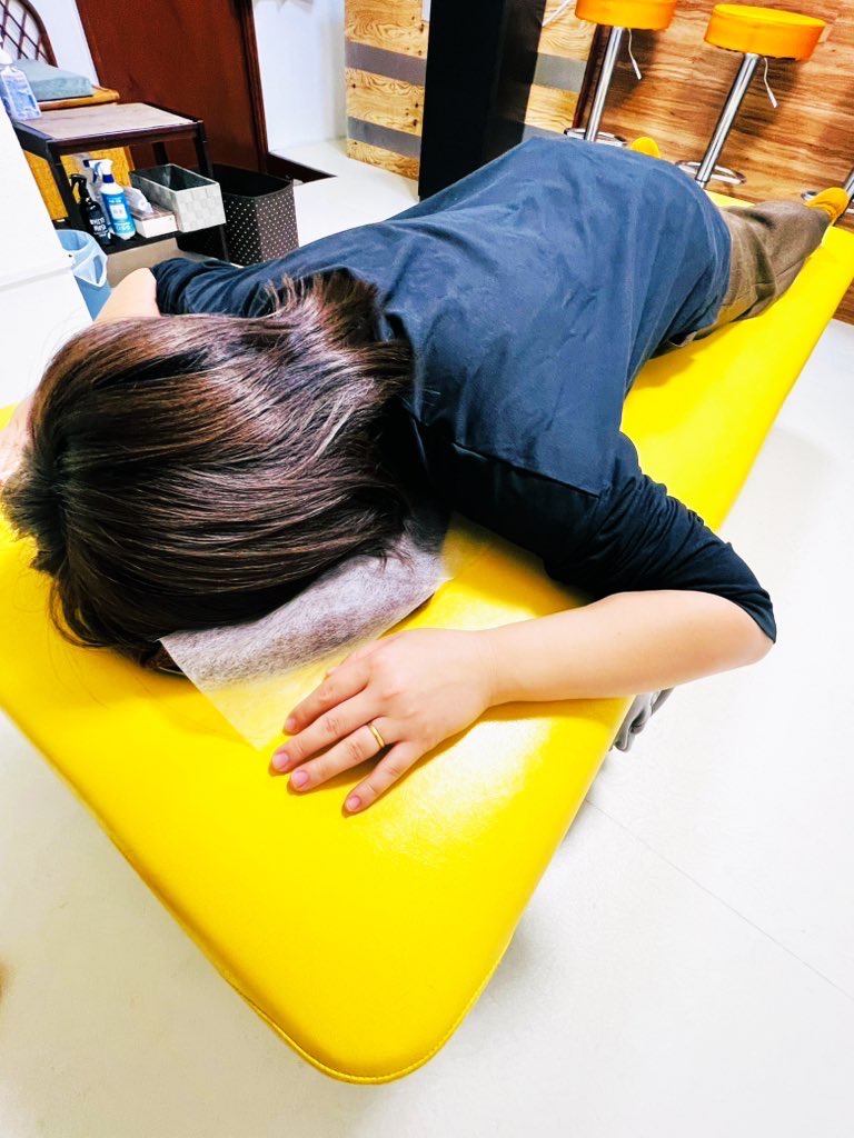 ガチガチお体には当店おすすめ整体㊙️伝『浸透療術』+『肩甲骨はがし改』にてうつ伏せ 横向き 仰向けと施術させていただきました♪長年のデスクワークで慢性化しております!月一回でも諦めずに忘れずにお体ケアしましょう♩