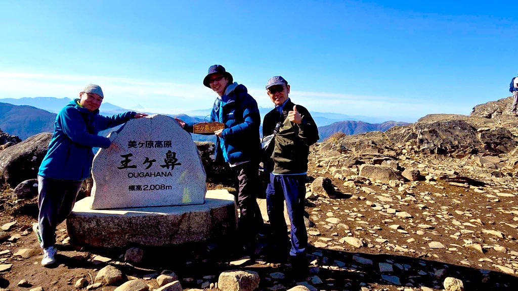 スタッフさんと美ヶ原高原山頂の
