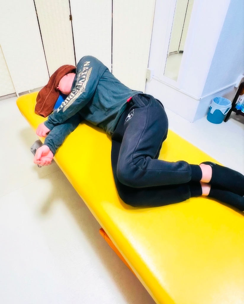 お辛いお体をうつ伏せ横向き仰向けと施術させていただきました♪