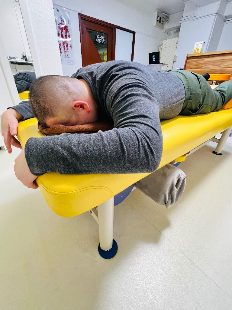 うつ伏せ横向き仰向けと転回整体でスッキリ解消できました。