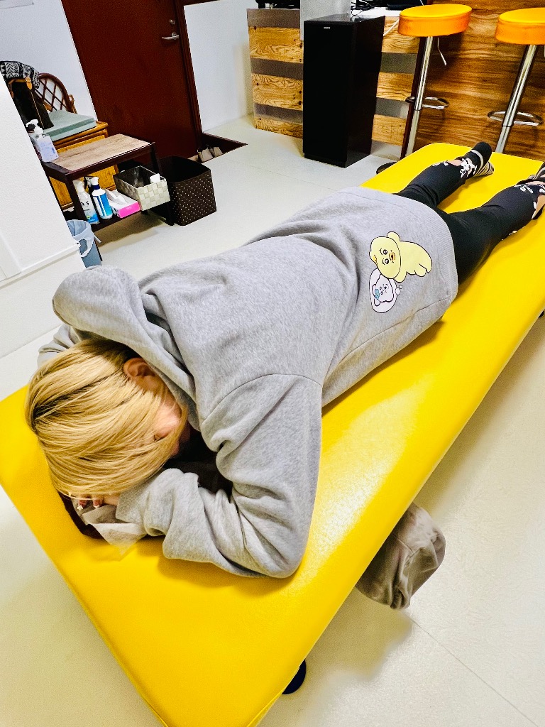 ご本人様のご希望で『浸透療術』をうつ伏せ横向き仰向けと転回しながら施術させていただきました♩腰部臀部とガチガチで慢性化してますので定期的なお体ケアをおすすめします。五十肩が回復して