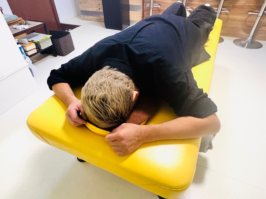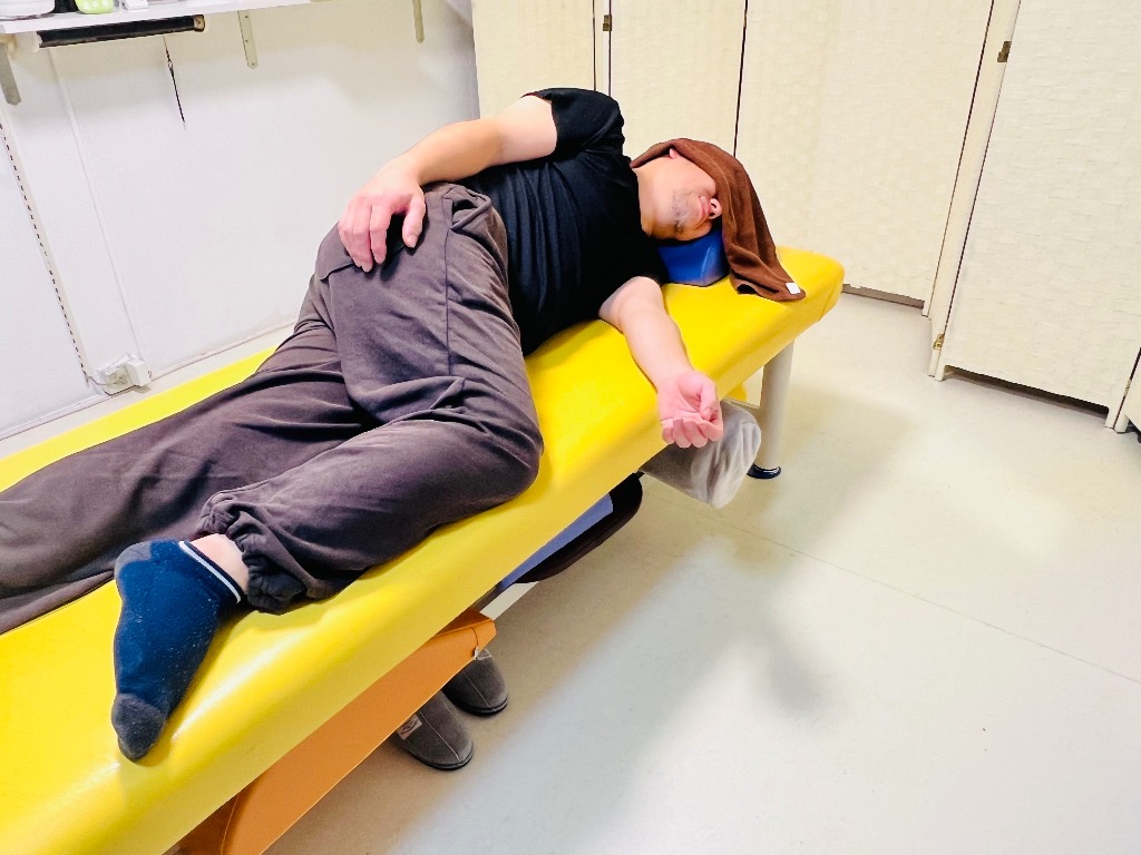 ㊙️伝の浸透療術でストレッチを加えながらうつ伏せ横向き仰向けと