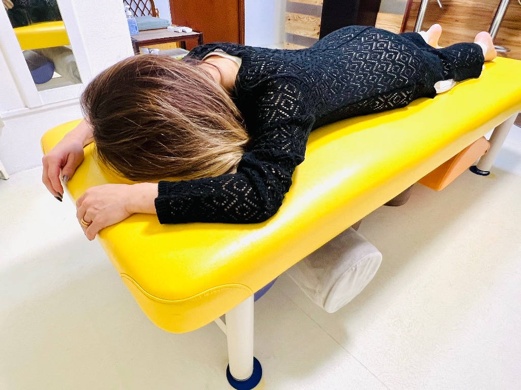うつ伏せでの長時間スマホ📲を見ている為、慢性首こり肩こり反り腰になってしまったのでしょう💧