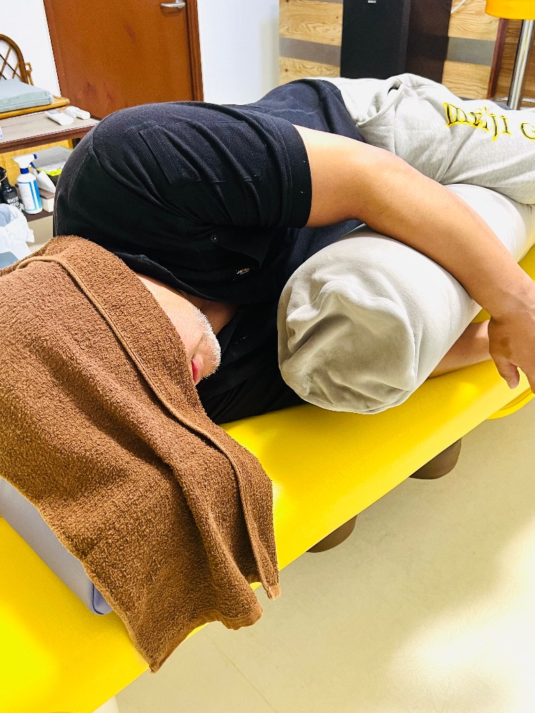 以前よりも浸透療術の圧を強めにし肩甲骨はがし『改』➕反り腰ストレッチをmixしながら