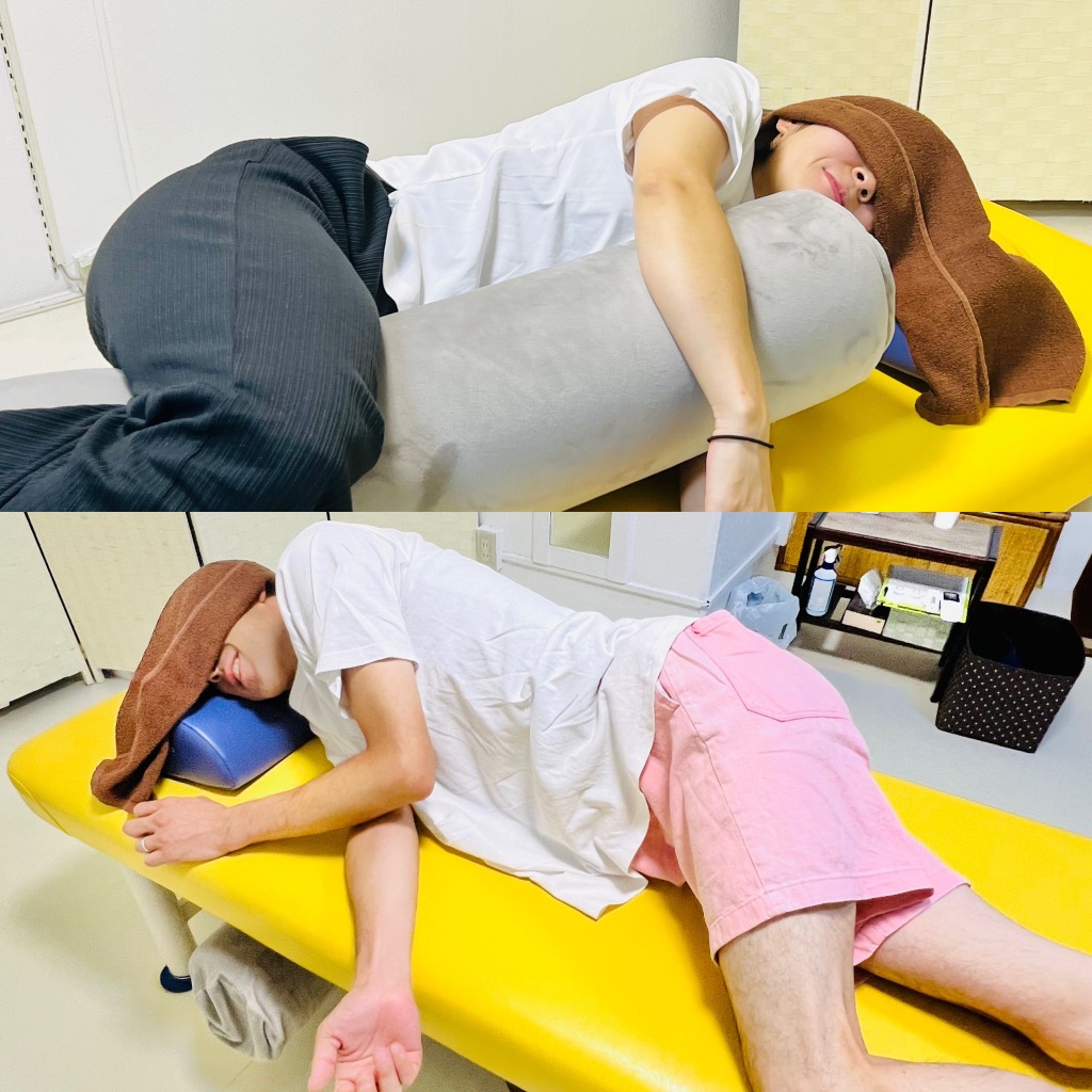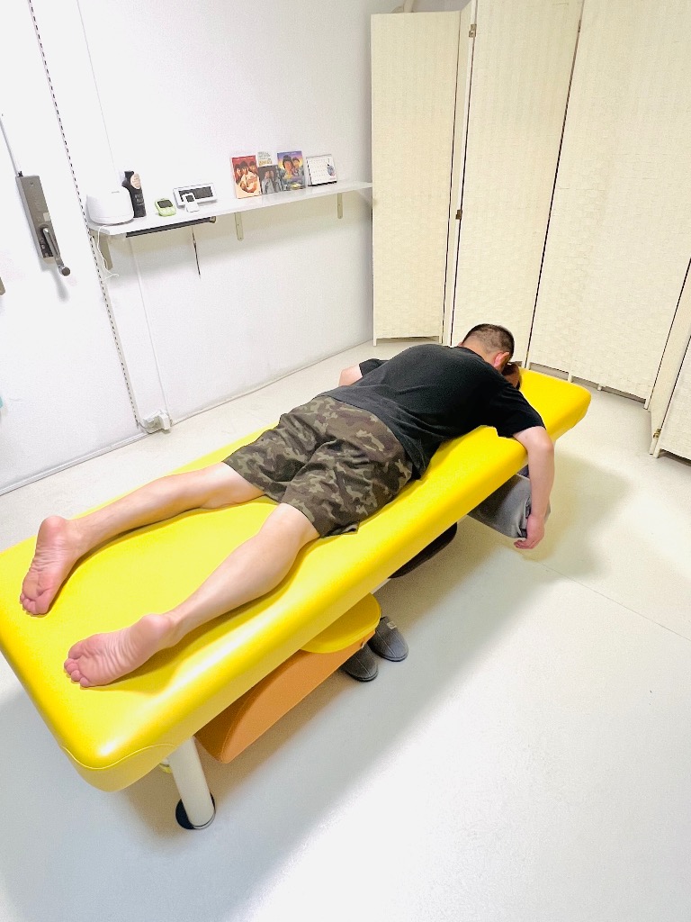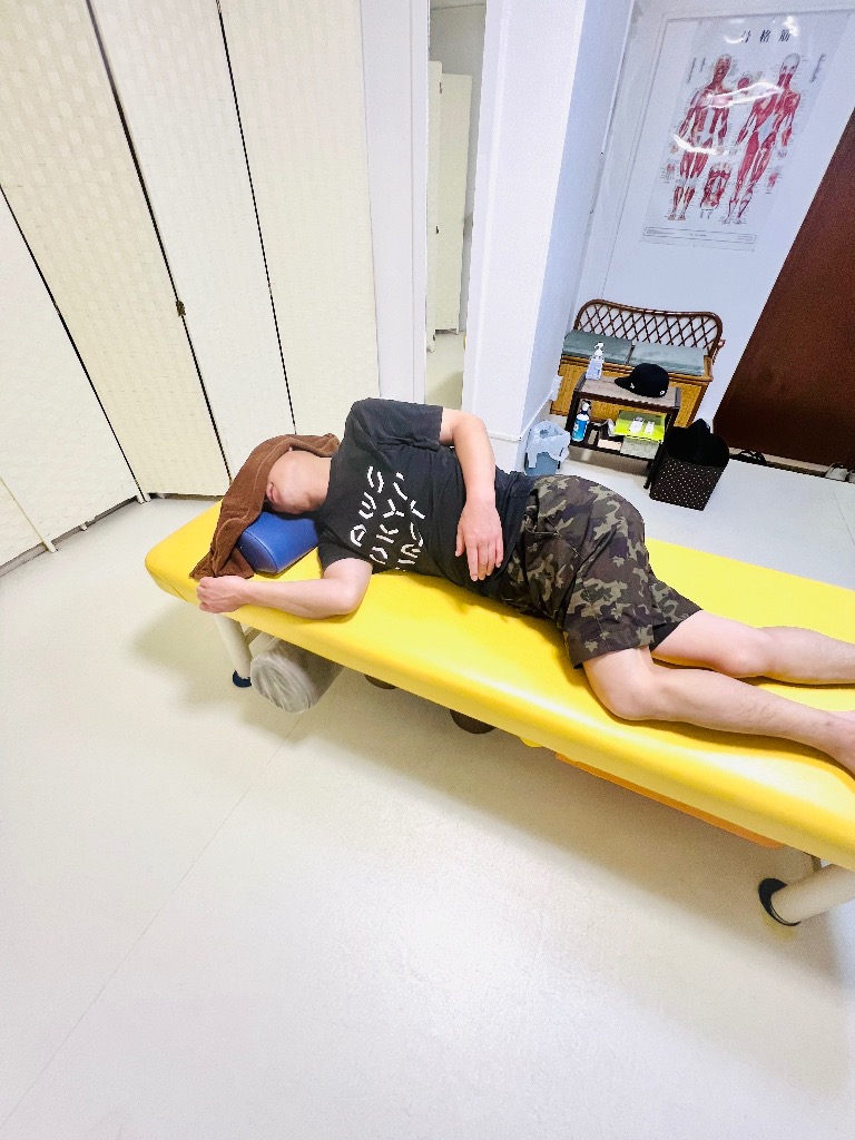 うつ伏せ横向き仰向けと転回整体し反り腰ストレッチも加えて